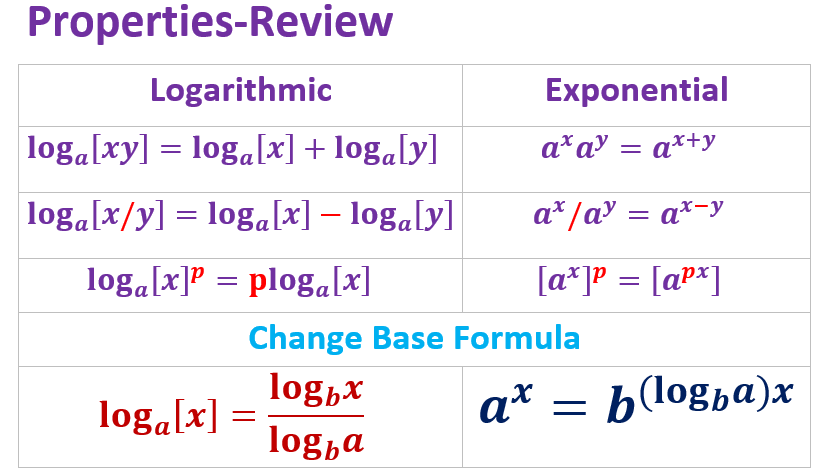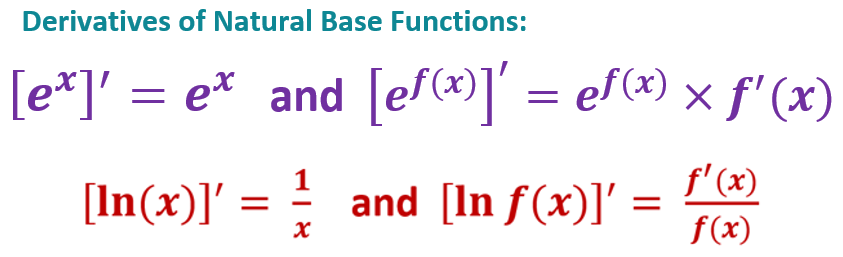 The following properties are very useful in simplifying the given functions, particularly the last two properties that are used used to derive the derivatives of the general exponential and logarithmic functions.