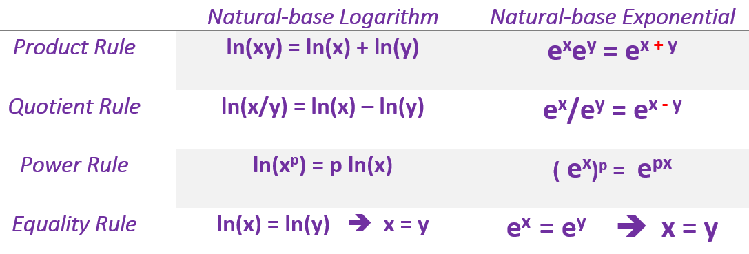- The basic properties of natural logarithmic and exponential functions are summarized in the following.
