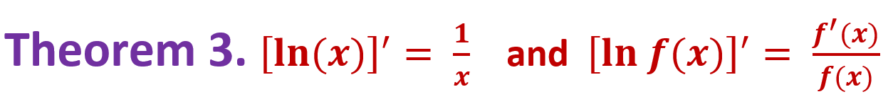 \[ [\ln f(x)]^\prime = \frac{f^\prime(x)}{f(x)}. \]