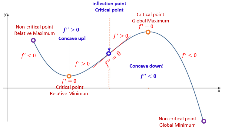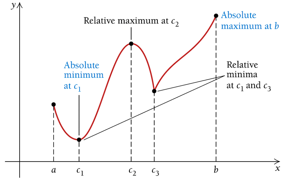 We have described the absolute (global) maximum and minimum in different figures in the previous note. Next, we give the verbal definition of absolute extrema in the following.