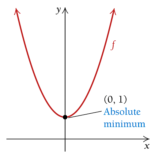 Therefore, the global minimum is \(f(0) = 0^2 + 1 = 1\) (see the minimum in the above figure).