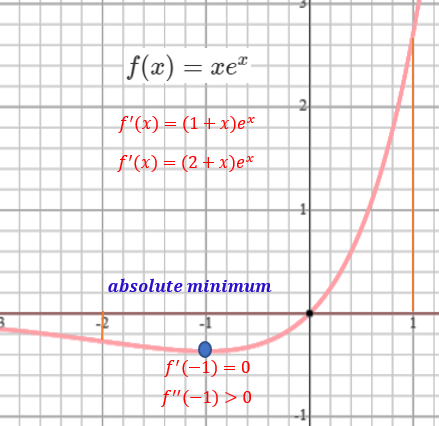 Therefore, \(f(x) = xe^x\) achieves its absolute minimum at \(x = -1\).