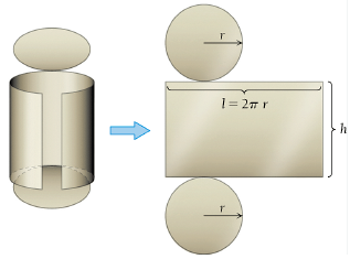 Solution: First, we cut the can in the following way to obtain two circles and one rectangle and then calculate the total area.