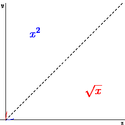 The following animated graph shows the symmetry of \(y = x^2\) and \(x = \sqrt{x}\).