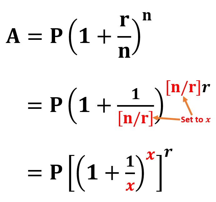 Therefore, if the interest is compounded continually, the account balance after a year is simply expressed in the following form