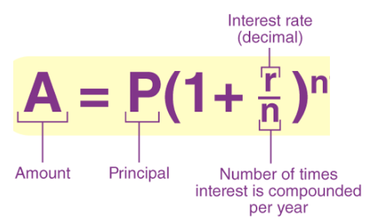 In general, if the interest is compounded \(n\) times a year, then the balance is expressed in the following